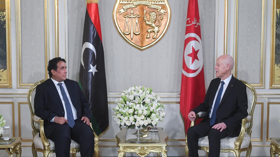 استقبل رئيس الجمهورية التونسية قيس سعيّد، يوم الأحد 18 أوت 2025، نظيره الليبي محمد يونس المنفي، رئيس المجلس الرئاسي الليبي، الذي أدى زيارة عمل إلى تونس. وقد جرت مراسم الاستقبال الرسمي بمطار تونس قرطاج الدولي، حيث عُزف النشيدان الوطنيان للبلدين، وتم استعراض تشكيلة شرف من الجيوش الثلاثة أدّت لهما التحية العسكرية.