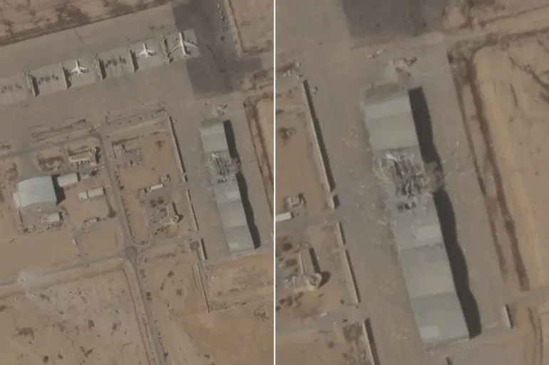 بدورها تحدثت “أسوشيتد برس” عن أن صور الأقمار الاصطناعية أظهرت ثقبا كبيرا في مستودع طائرات بالقاعدة العسكرية، كما يمكن رؤية قطع كبيرة من الحطام متناثرة حول المبنى وذلك بعد القصف الإيراني المكثف.